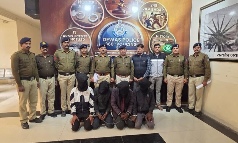 देवास | 28 दिसंबर 2025 | ट्रुथ 24 न्यूज़, थाना सिविल लाईन क्षेत्र में नायरा पेट्रोल पंप के केशियर से हुई करीब दो लाख रुपये की लूट की वारदात का देवास पुलिस ने मात्र 15 दिनों में खुलासा कर दिया है। थाना प्रभारी निरीक्षक हितेश पाटिल के नेतृत्व में गठित पुलिस टीम ने चार आरोपियों को गिरफ्तार करते हुए लूटी गई शत-प्रतिशत संपत्ति बरामद की है। यह थाना प्रभारी पाटिल के लिए एक और बड़ी सफलता मानी जा रही है।