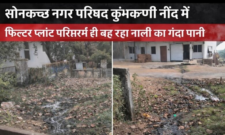 सोनकच्छ नगर परिषद कुंभकर्णी नींद में।फिल्टर प्लांट परिसर में ही बह रहा नाली का गंदा पानी।