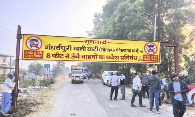 सोनकच्छ–गंधर्वपुरी मार्ग पर 8 फीट से ऊँचे व भारी वाहनों का प्रवेश प्रतिबंधित