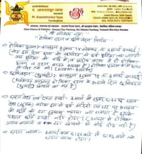 नगरवासियों से अपील की गई है कि वे होली का पर्व आपसी सौहार्द, संयम और परंपराओं के सम्मान के साथ मनाएं तथा किसी भी प्रकार की अफवाहों पर ध्यान न दें।